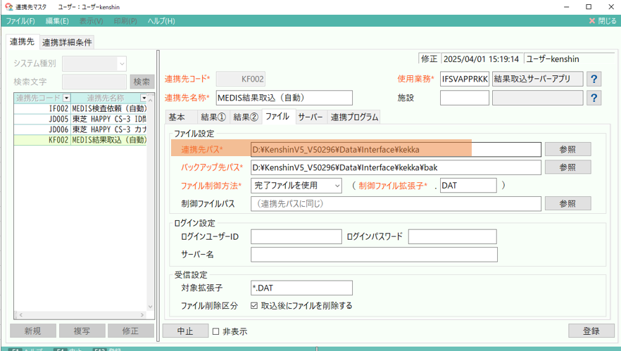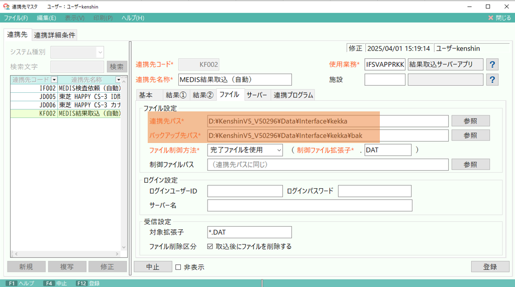 • 連携先マスタで連携先パスとバックアップ先パスを設定する。