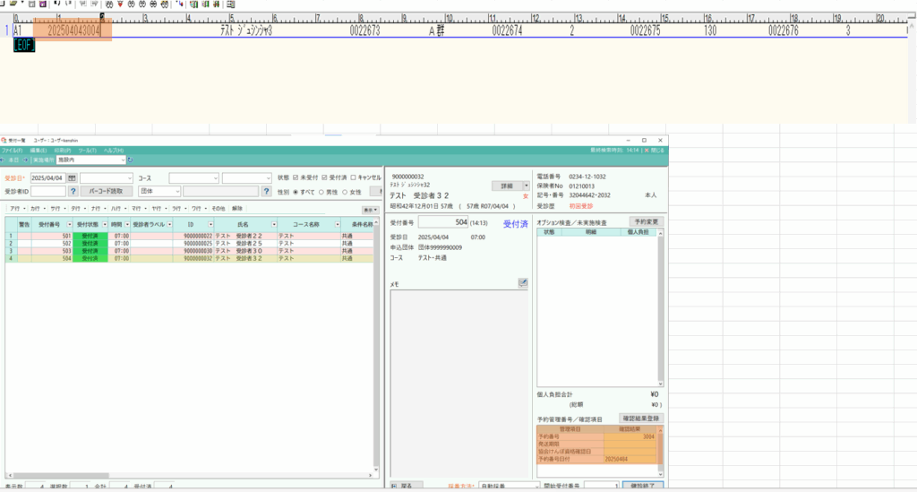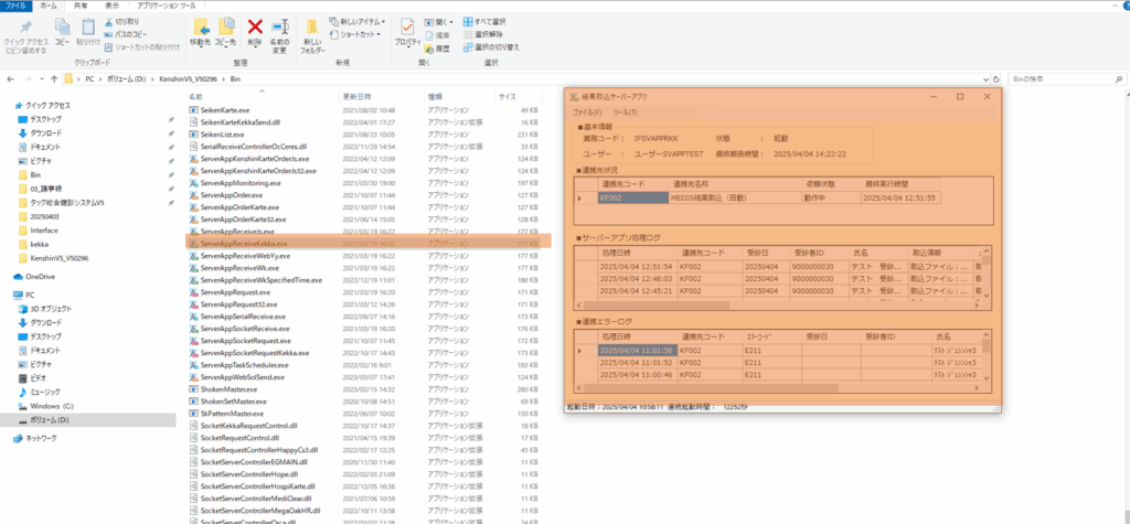 • 検査依頼会社から受け取った電文ファイルを共有フォルダに格納することで自動で電文ファイルに記載された結果が取り込まれる機能