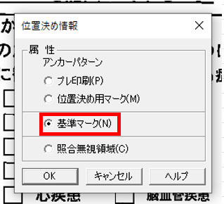 - 設定した箇所をダブルクリックし、基準マークを選択