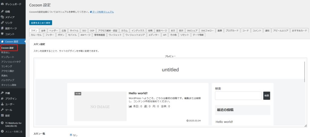 Cocoonのインストールが完了しましたら、Cocoonのテーマ設定を行ってください。